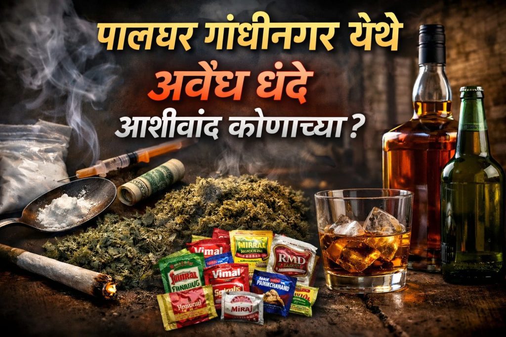 पालघर शहरात गर्दा, मटका, गांजा व गुटख्याची खुलेआम विक्री; पोलीस कारवाई फक्त कागदावर? थेट सवाल एसपींना. पालघर (गांधीनगर): पालघर शहरातील गांधीनगर परिसरात गर्दा, गांजा, गुटखा आणि मटका यांसारखे अवैध धंदे खुलेआम सुरू असल्याचे वास्तव समोर येत आहे. बंदी असतानाही दिवसाढवळ्या चालणारे हे समाजविघातक व्यवसाय युवकांचे भविष्य उद्ध्वस्त करत आहेत. स्थानिक माहितीनुसार, गर्दा विक्री इतक्या मोठ्या…