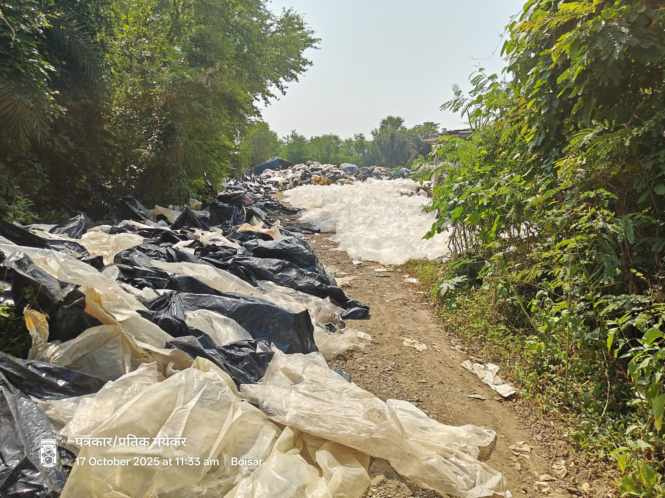 Boisar | In Palghar taluka’s Kolwade village, the very breath of nature is suffocating today. Though the land belongs to the MIDC, the administration seems to have completely lost control over it. On this very site, two individuals — Ramakant and Sadam — are openly running an illegal plastic washing and storage business, and the entire village is paying the price.