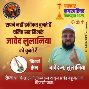 जावेद भाई एक नेकदिल, ईमानदार और समाज के लिए हमेशा समर्पित रहने वाले इंसान हैं,जो मायनॉरिटी समाज और पालघर के हकों के लिए लगातार खड़े रहे हैं।