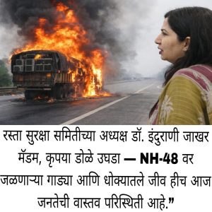 चारोटी टोल नाके के पास AC से भरे ट्रक में अचानक आग NHAI की भारी लापरवाही उजागर NH-48 मुंबई–अहमदाबाद महामार्ग पर चारोटी टोल नाका के पास अभी-अभी एक AC से भरे ट्रक में शॉर्ट सर्किट के कारण आग लगने की गंभीर घटना सामने आई है।