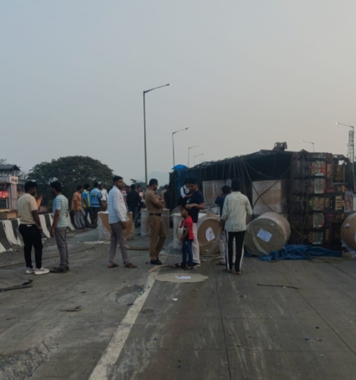 पालघर: मुंबई–अहमदाबाद राष्ट्रीय महामार्ग (NH 48) पर चारोटी नाका उड्डाण पुल पर एक बड़ा हादसा सामने आया है, जहां एक अवजड (भारी) ट्रक वाहन पलट गया। इ