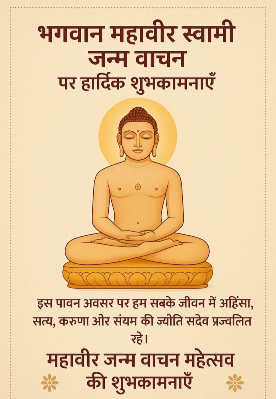 ЁЯМ╕ рднрдЧрд╡рд╛рди рдорд╣рд╛рд╡реАрд░ рд╕реНрд╡рд╛рдореА рдЬрдиреНрдо рд╡рд╛рдЪрди рдорд╣реЛрддреНрд╕рд╡ рдХреА рд╢реБрднрдХрд╛рдордирд╛рдПрдБ ЁЯМ╕