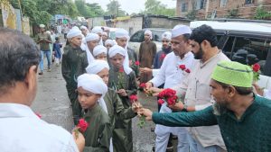आपल्या परिसरातील सर्व धर्मीय समभाव राखण्याचे कार्य करीत असतात आज सुद्धा मुस्लिम धर्मीयांचा ईद मिलादुन्नबी हा पैगंबर मोहम्मद साहेबांचा वाढदिवसाचा मोठा सण असून या सणांमध्ये कुडूस परिसरातील नारे ,वडवली, वडवली कॅम्प येथे सुद्धा मिरवणूक काढली जाते व सर्वेकडे मोहम्मद साहेबांच्या नावाने जय जयकार केला जातो अशा या सणाप्रसंगी मा. मंगेश जी भोईर यांनी आपले सहकारी अमित शिर्के, कल्पेश पाटील, उत्तम चौधरी विनोद जाधव, व इतर सहकारी यांच्या जोडीला प्रत्येक ठिकाणी जाऊन मुस्लिम धर्मीयांना ईद-ए-मिलादुन्नबीच्या पुष्पगुच्छ देऊन शुभेच्छा दिल्या मंगेश जी भोईर यांचे कार्य खूपच महान आहे जातीय सलोखा कायम राहावा यासाठी सुद्धा ते कायम प्रयत्नशील असतात प्रत्येक धर्म जातीच्या लोकांना एकत्र घेऊन चालतात मंगेश जी पाटील यांच्यासारखे नेतृत्व प्रत्येक तालुक्याला लाभले पाहिजे मंगेश जी पाटील यांचे व सहकाऱ्यांचे सुद्धा कुडूस, नारे, वडवली येथील मुस्लिम बांधवांनी स्वागत केले व आभार मानले