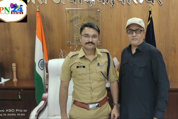 पालघर जिल्हा पोलीस अधीक्षक यतिश देशमुख यांना पालघर नागरिक न्यूजच्या उपसंपादकांची सदिच्छा भेट. कुडूस – आज, दिनांक १३ ऑगस्ट रोजी पालघर नागरिक न्यूजचे उपसंपादक अमीन मेमन यांनी पालघर जिल्हा पोलीस अधीक्षक मा. यतिश देशमुख यांची सदिच्छा भेट घेतली. या भेटीत अमीन मेमन यांनी यतिश देशमुख यांना अलीकडेच प्राप्त झालेल्या विशेष सेवा पदकाबद्दल हार्दिक अभिनंदन केले….